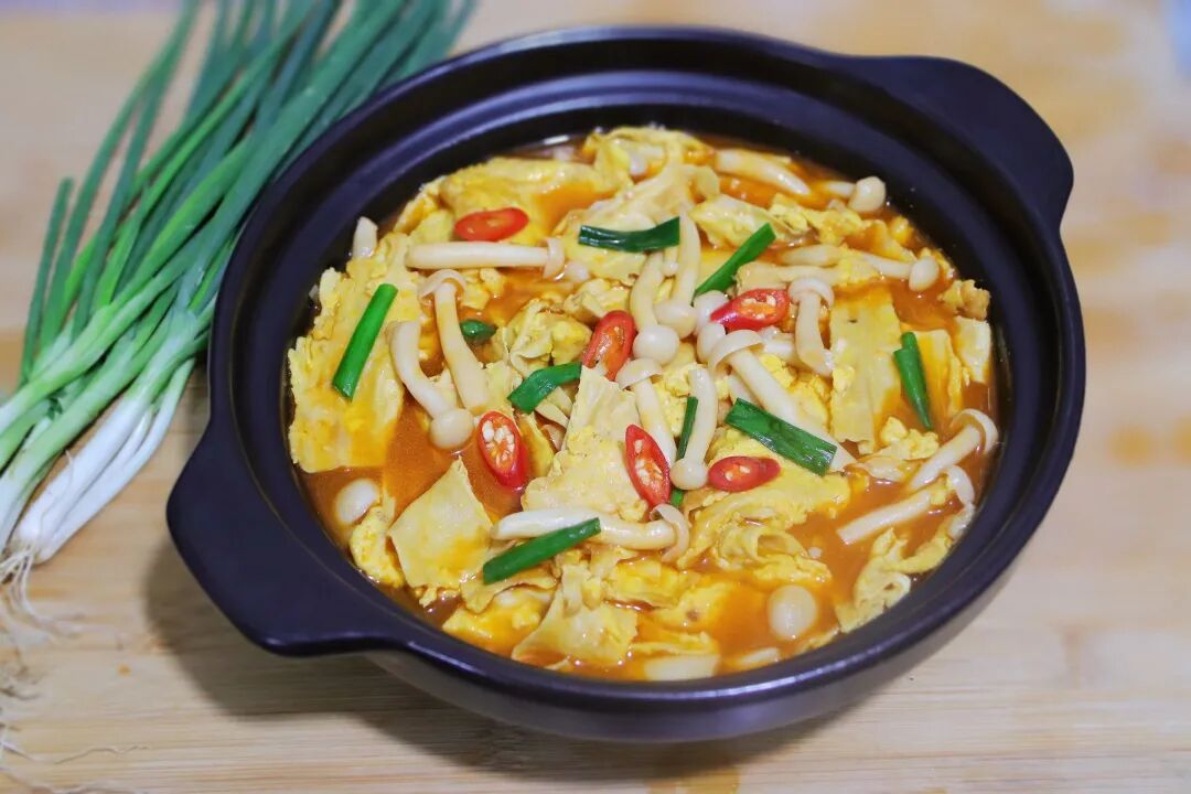 鸡蛋腐竹蘑菇煲