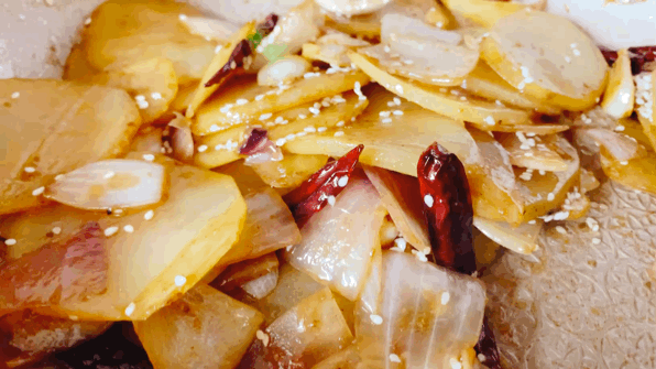 出锅装盘,一盘喷香下饭的洋葱炒土豆就做好啦!一直都觉得洋葱作为烧烤配菜很美味,没想到不用直接烤,放入孜然粉之后,和土豆炒出来吃起来比肉还香!喜欢的朋友也赶快试试吧!洋葱营养又美味,还能提高免疫力,在这特殊时期,宅在家不妨多吃洋葱。