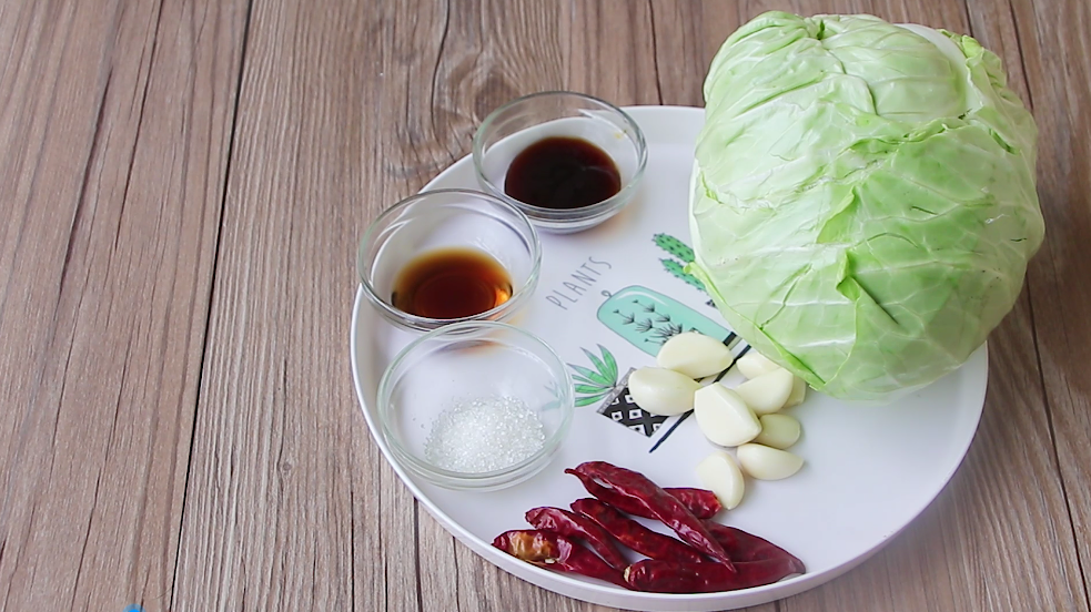 准备好食材:包菜一颗、蒜米适量、干辣椒适量、花椒粒适量
