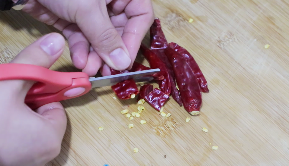 3、记得要去掉辣椒籽,辣椒籽后续在炒的时候很容易炒糊发黑,影响菜品的颜值哦。