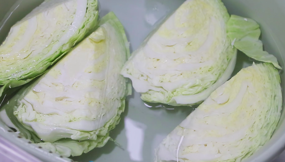 2、包菜在生长的过程当中,十分容易招惹一些小虫子,因此菜农都会给包菜打农药,而包菜的叶子结构紧密,农药十分容易残留在叶子上,咱们用食盐浸泡一会,就可以很好的把农药残留分解了。