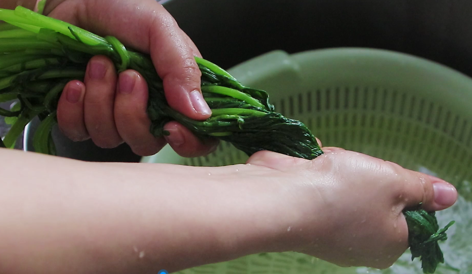 3,挤出茼蒿菜当中的水分,后续茼蒿菜就不会有太大的水分溢出来。