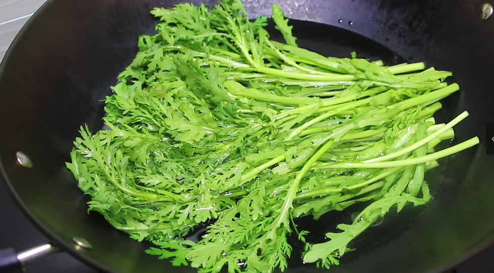 调料:食盐、茼蒿菜、食用油、白糖、白芝麻