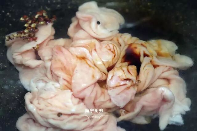 上一个步骤把肥肠清洗干净了,可腥臭味还有,那咱们可以放入食醋或者柠檬汁来把肥肠腌制一下,然后再用活水冲洗干净,你会发现肥肠已经没有腥臭味了,还散发出淡淡的柠檬清香味。