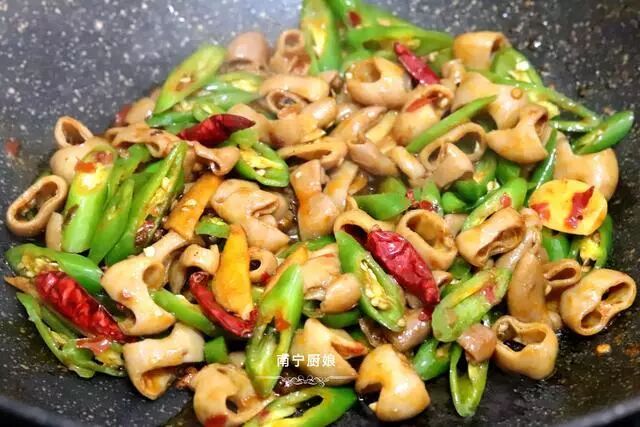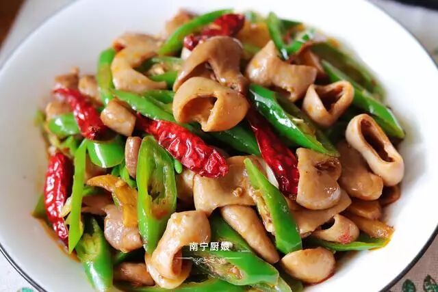 既然猪大肠清洗干净了,我们来做一道青椒炒肥肠来吃吃吧!