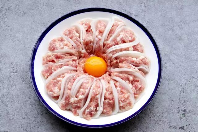 1,腌制肉馅。将买回的肥瘦相间的猪肉剁成肉馅(亦可到超市买现成的肉馅),根据个人口味放入适量的盐、料酒、淀粉,打入一个完整的鸡蛋,继续搅拌均匀,放一旁备用。
