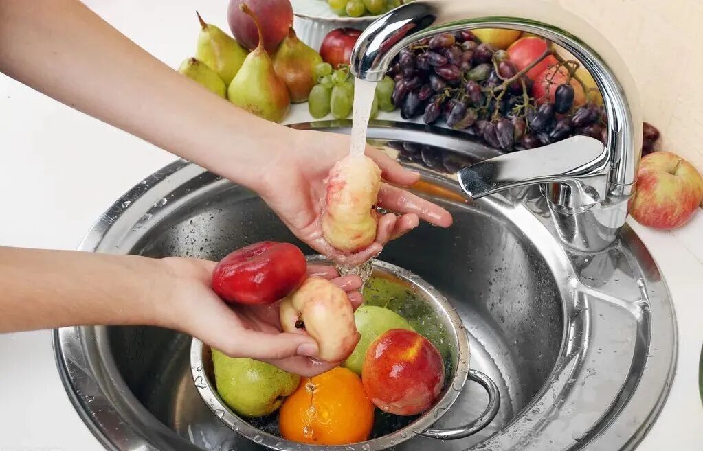 清洗蔬果,清洗蔬果首选用小苏打。在清水中加入小苏打然后浸泡一下果蔬,小苏打会吸附果蔬上的农药残留物,冲洗后就容易将农药去除掉了。而食用碱也有很好的软化污垢的作用,但由于酸性大,容易导致果蔬中的营养一同流失。