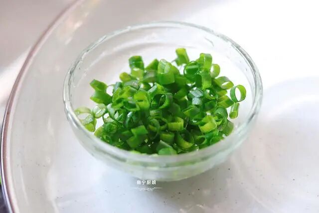 1、将葱洗净,切成小片的葱花备用。