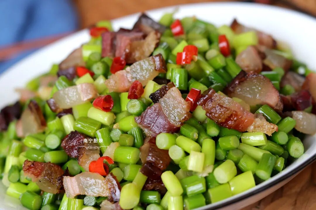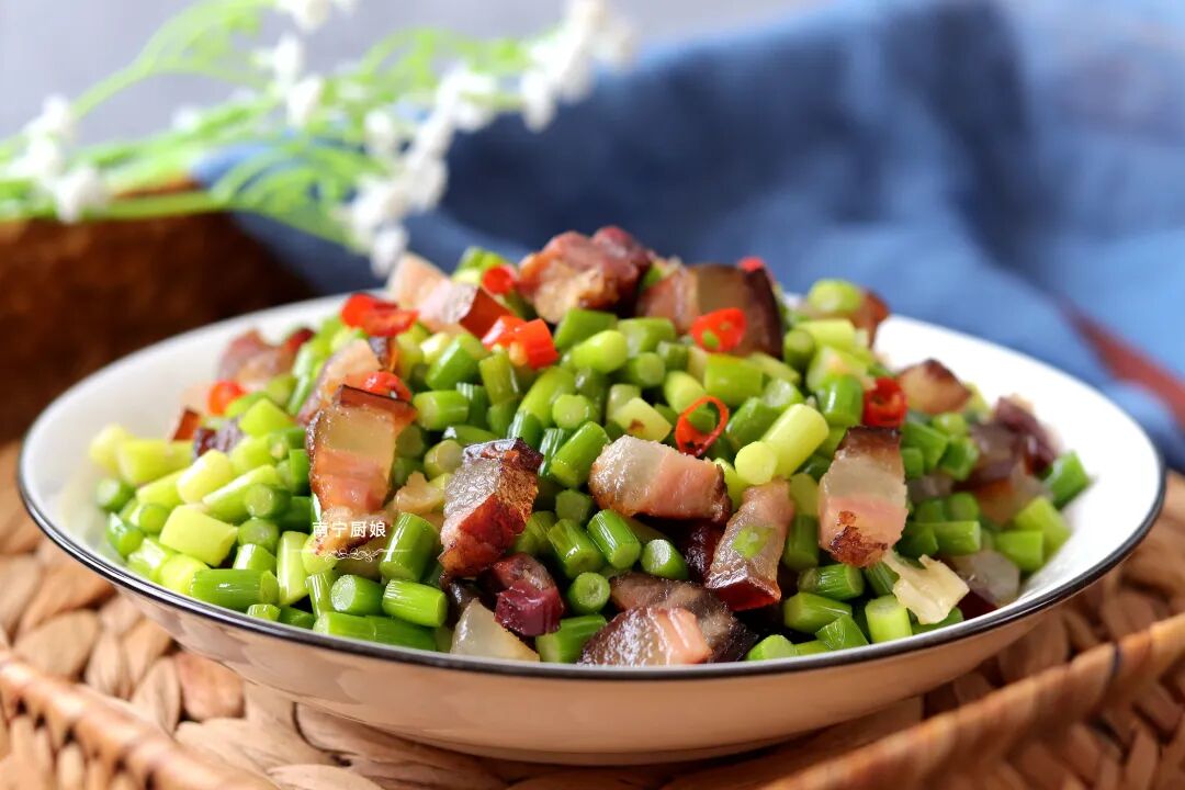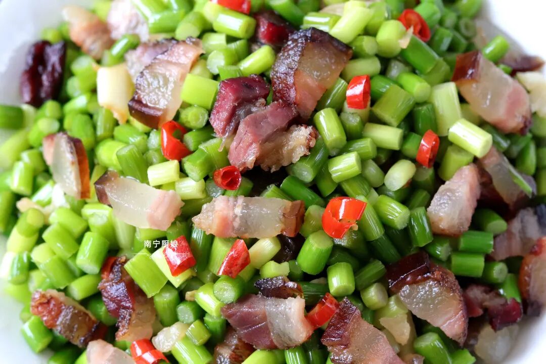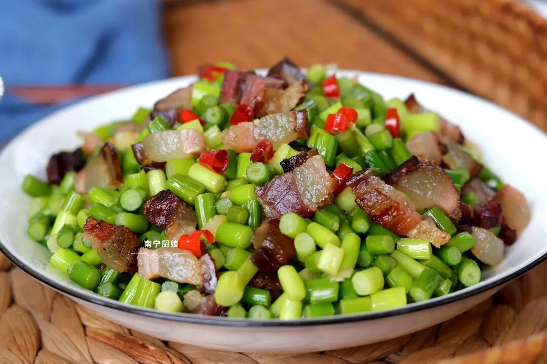 一到菜摊就第一眼被碧绿整洁捆绑起来的蒜薹给吸引了,顿时,脑海里立即就想着购买一把蒜薹回去和腊肉炒着吃,为了让这道菜做起来更下饭,我特地把蒜薹和腊肉都切成丁来炒食,这道蒜苔炒腊肉下饭家常菜一出锅上桌,老公就迫不及待的盛了碗米饭开始吃起来。