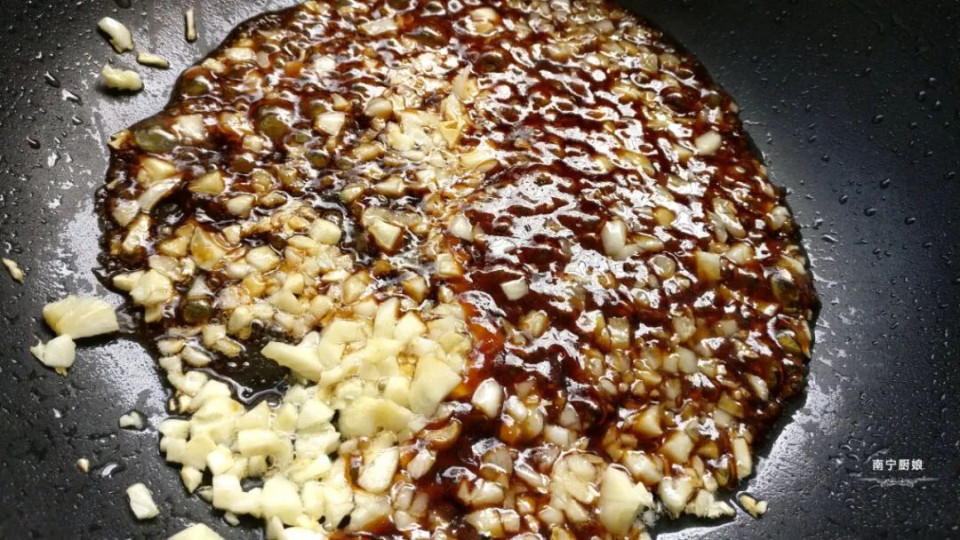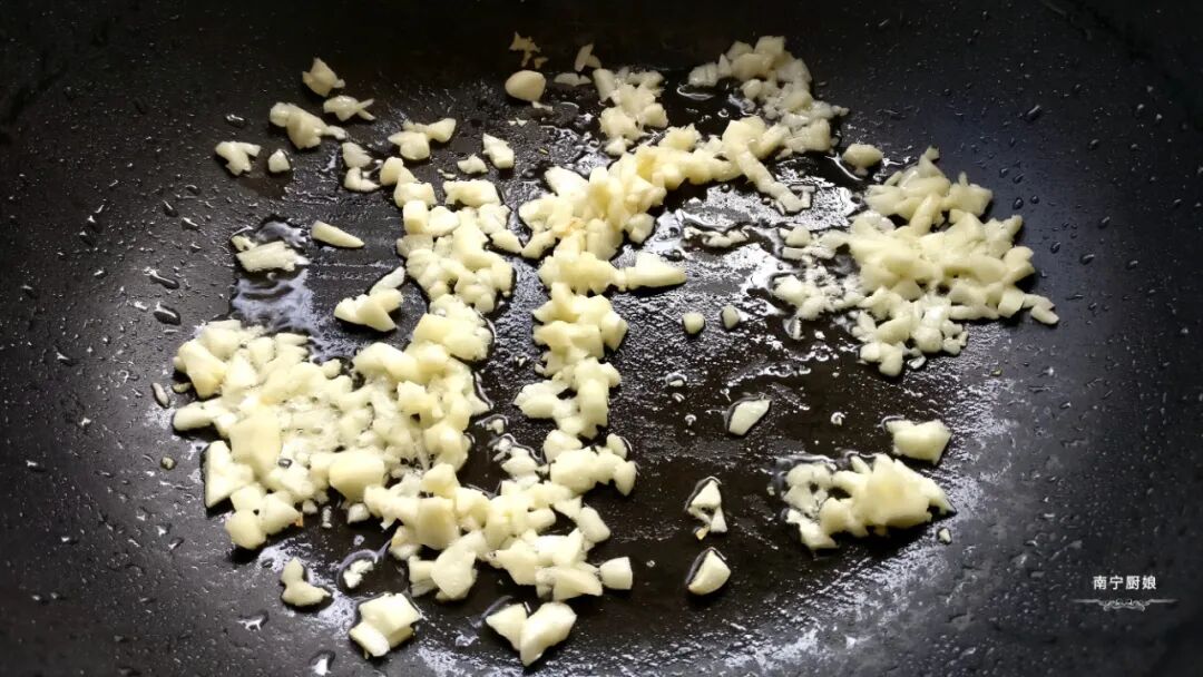 5、重启锅,在锅里倒入少量油,烧热后放入蒜米爆香