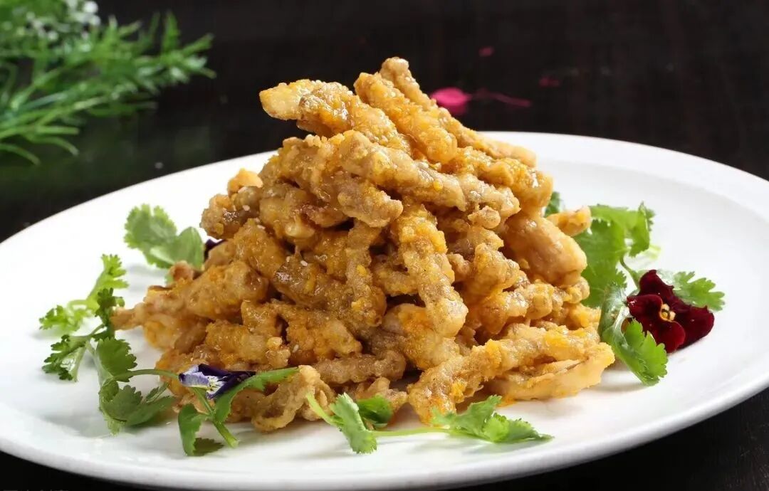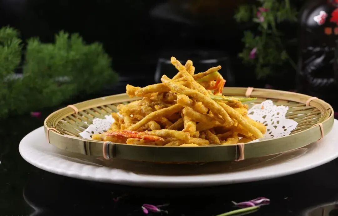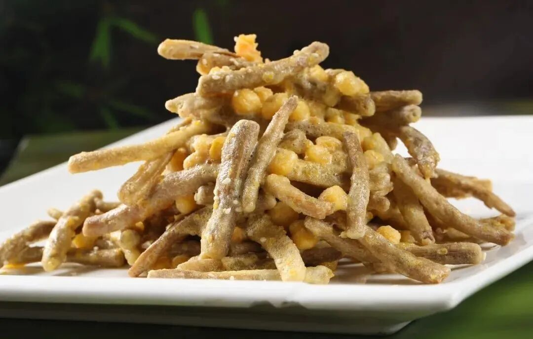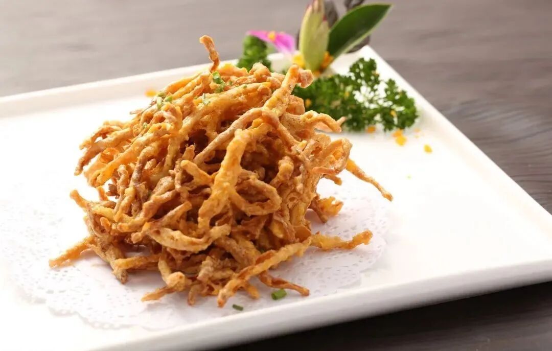 酥脆的炸茶树菇配上咸香柔软的咸蛋黄,丰富的口感让人一吃就很难停下来,咸中带甜的味道吸引人的味觉,让人闻到就欲罢不能。