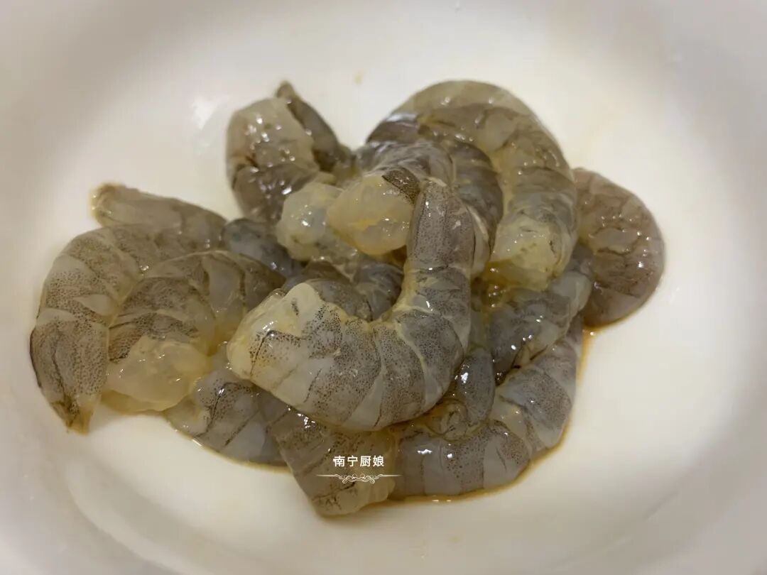 然后在烹饪之前最好用水淀粉上浆,这样就可以在虾仁表面形成一层保护膜,从而让让虾仁在下锅与热油接触到过程中避免直接接触,很好的保存了虾仁的水分,烹饪出来虾仁显得更饱满,成色更好,吃起来口感也更脆嫩。
