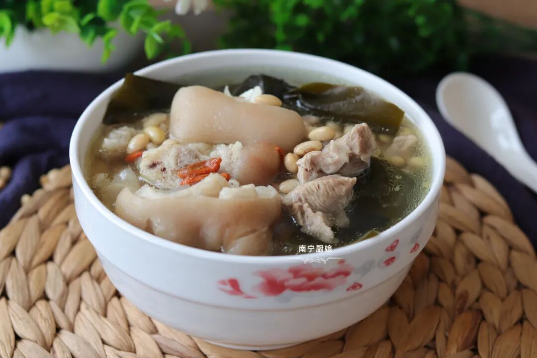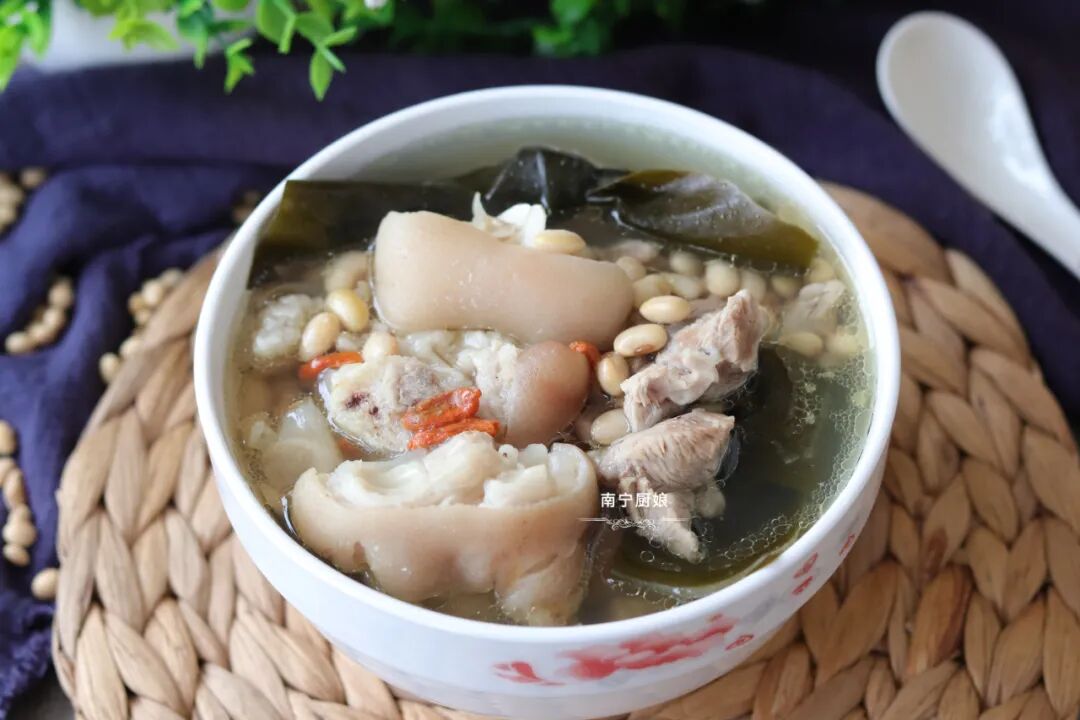 出锅装碗,一碗鲜美又滋补的猪蹄炖黄豆海带就做好啦!猪蹄经过炖煮,软烂得恰到好处,而且猪蹄里的胶原蛋白充分的释放融入到了汤水中,让汤水喝起来更加的鲜甜,黄豆和海带也炖得很软嫩,而且有了黄豆和海带的加入,可以很好的吸收汤水的油腻感,让汤水更加的鲜美了,可谓点睛之笔!