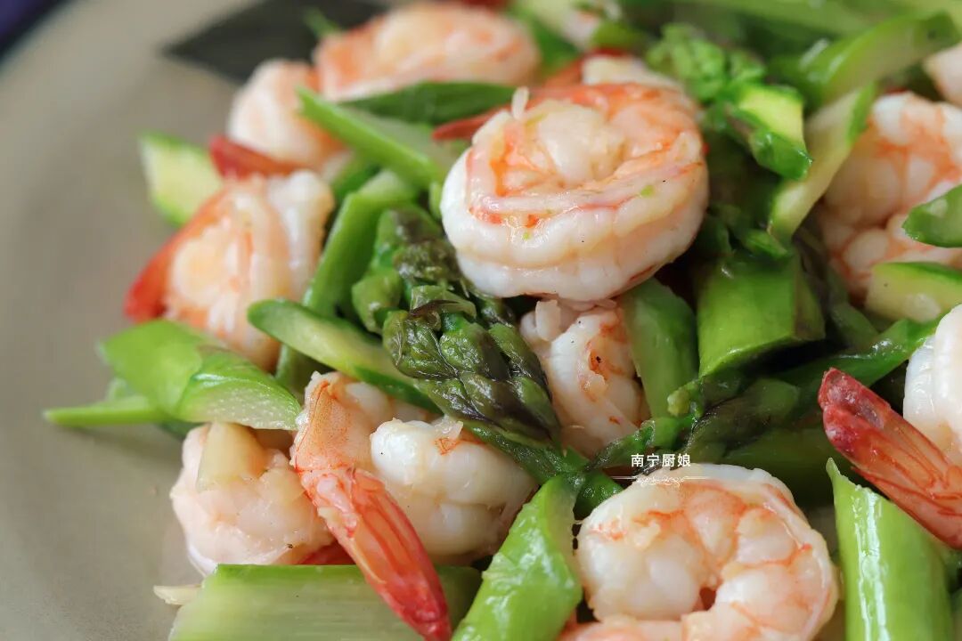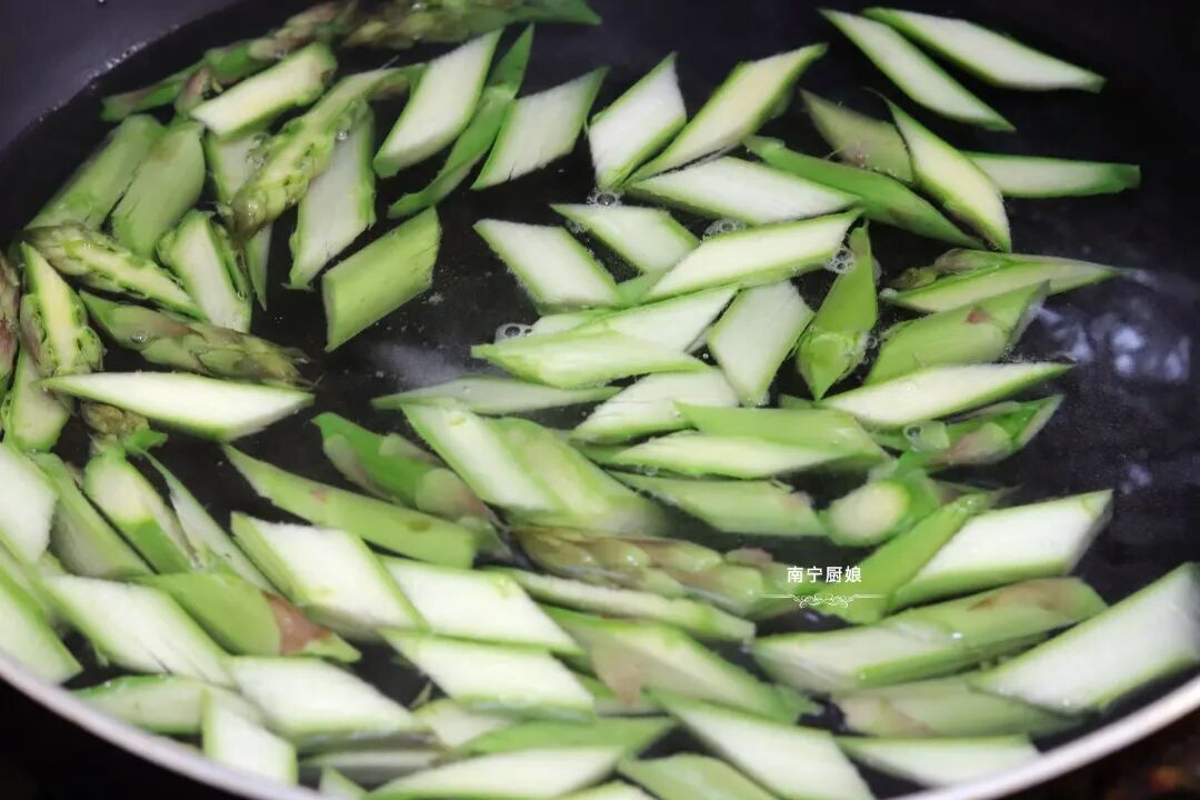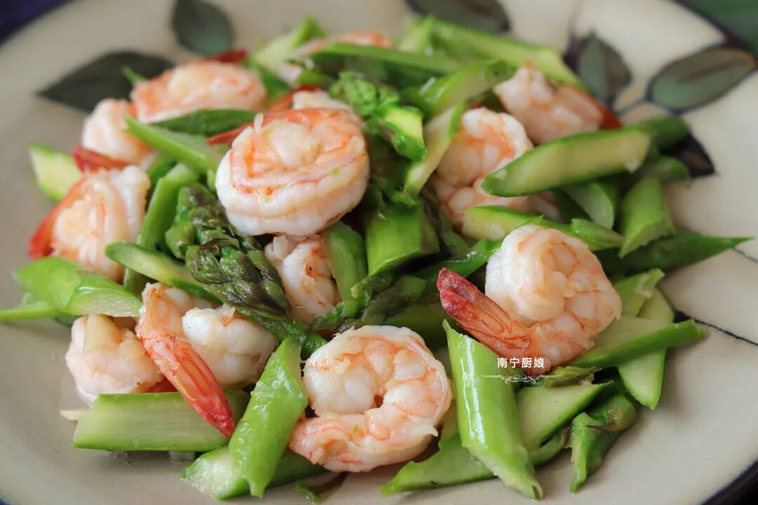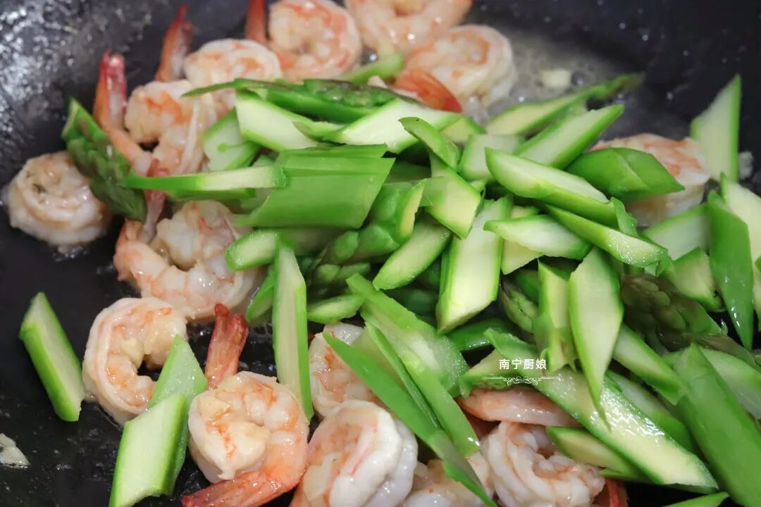 1、芦笋和虾仁都焯水,就很方便炒熟了,不会存在说把虾仁都炒老了,芦笋却还没炒熟的情况!