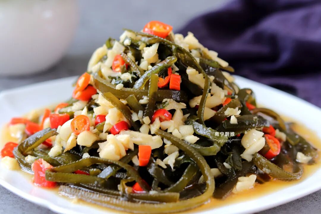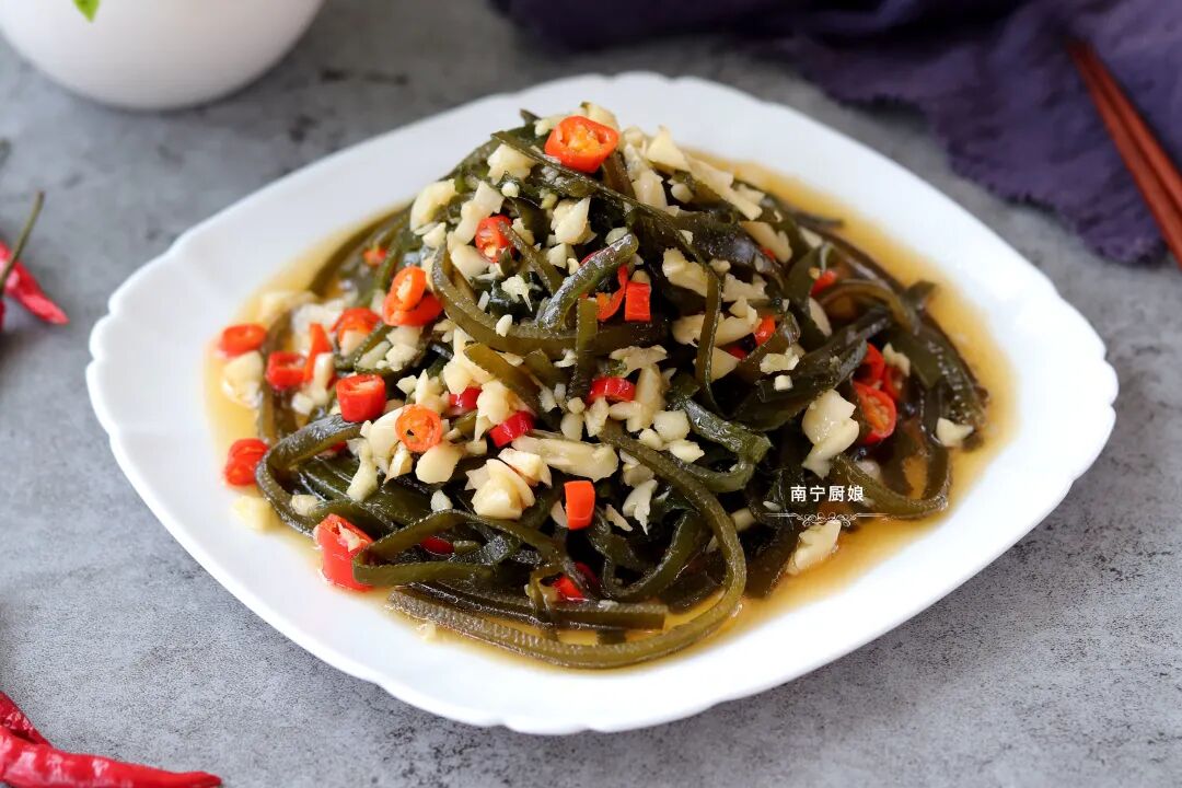 海带丝吃起来脆嫩又酸辣,吃完一筷子忍不住又夹上一筷子,真是太开胃了!