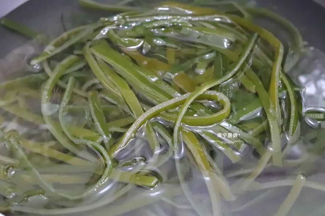 1、在锅里烧热半锅水,把海带丝放入焯熟,大约10分钟,捞出过凉水后待用。