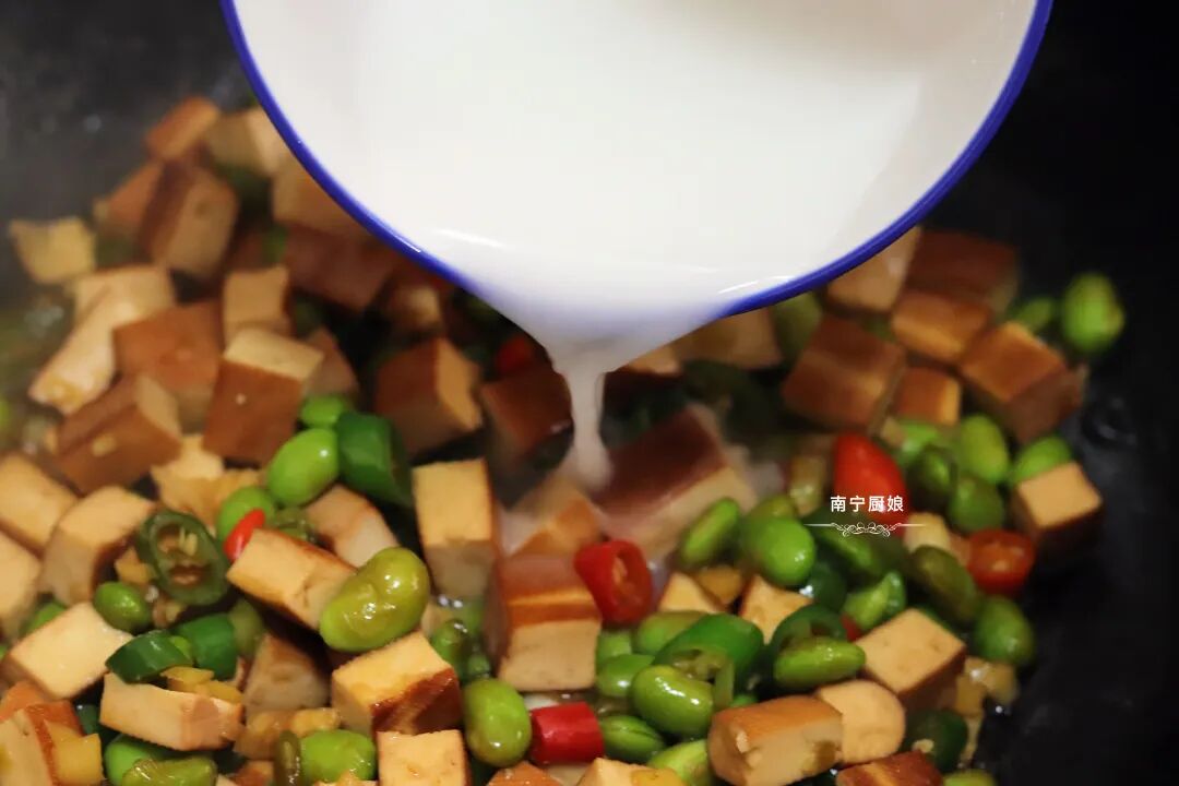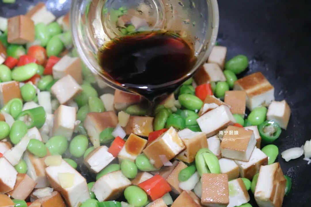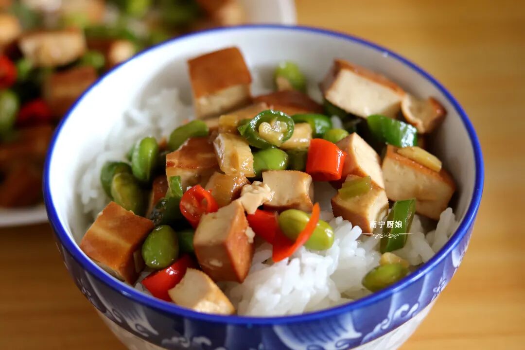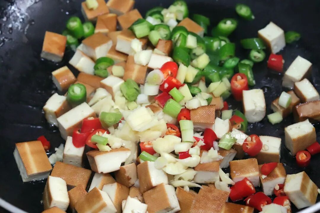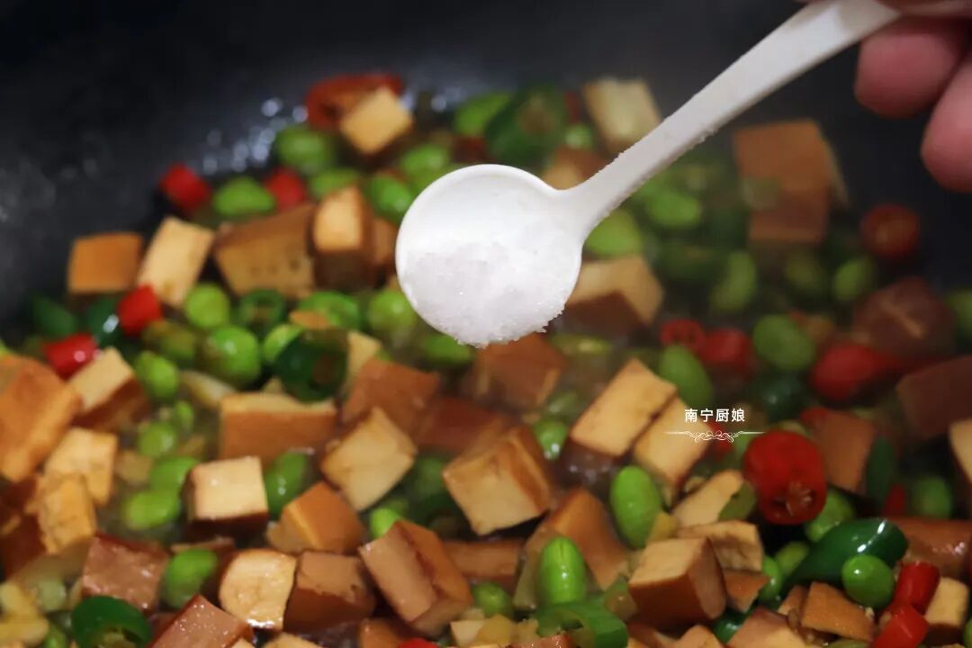 这道菜的主要食材就是香干、毛豆和辣椒,三种食材一起炒,下饭又下酒。
