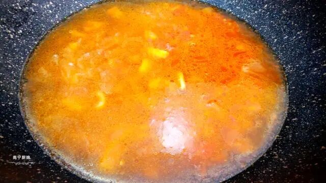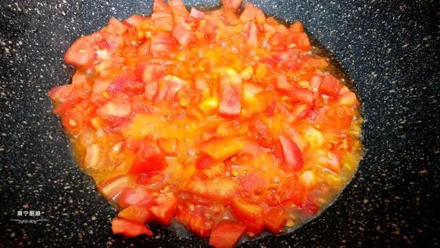 3、煸炒出番茄汁后,倒入2碗凉水,然后开大火烧开。
