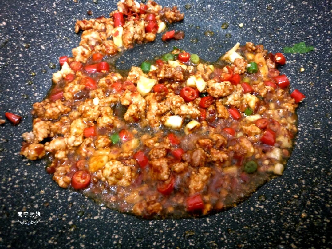 1、把猪里脊肉洗净后剁碎,指天椒洗净后切碎,姜蒜去皮后切碎,香葱洗净后切碎装碟待用。