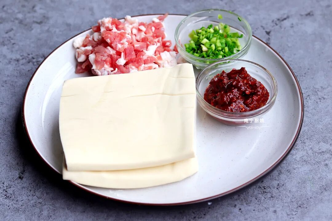 所需食材:嫩豆腐、五花肉、豆瓣酱、淀粉、油、盐、生抽、葱花、蒜