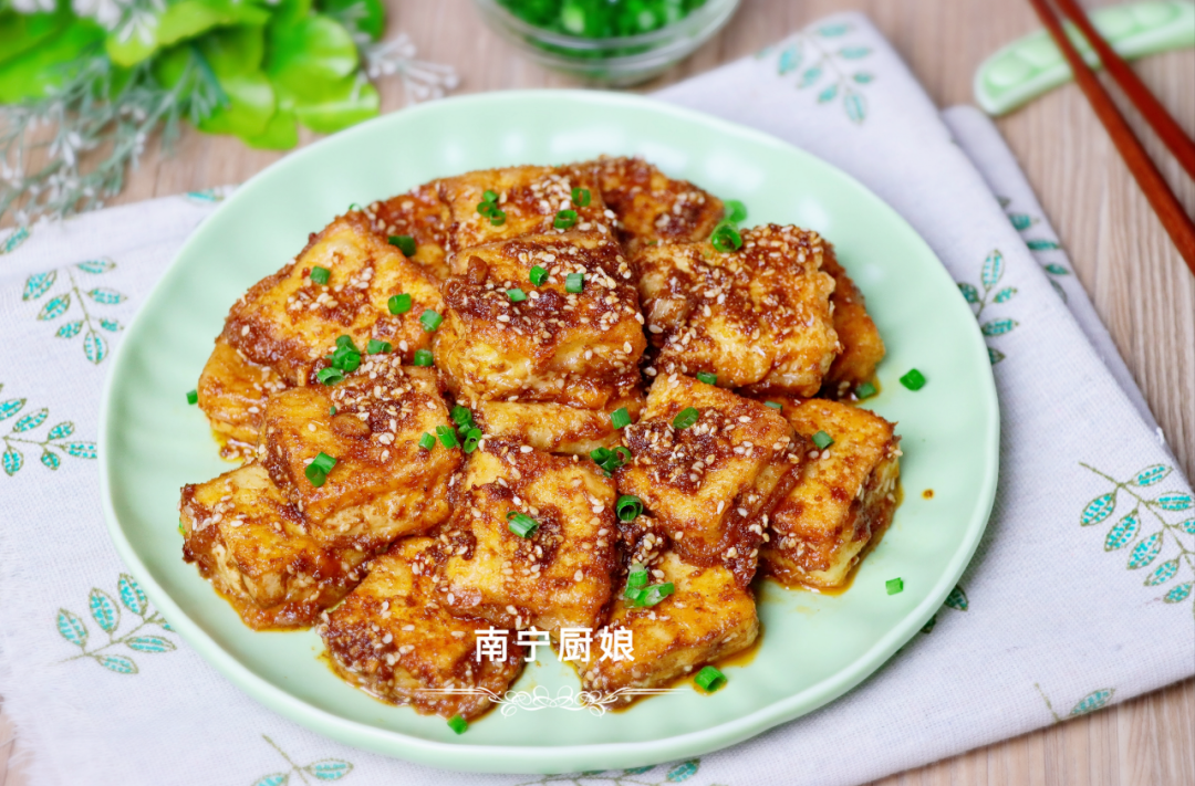 对于豆腐的吃法,作为一个吃货来说,我还是比较钟情于煎和烤这两种烹饪方式,因为豆腐本身是豆制品,在通过高温煎炸烧烤后,豆腐里的蛋白成分与温度发生化学反应,散发出诱人的迷人焦香味,吃起来外焦里嫩,口感堪比肉类,却没有普通肉类那般柴牙,可以说是比吃肉还过瘾的了。