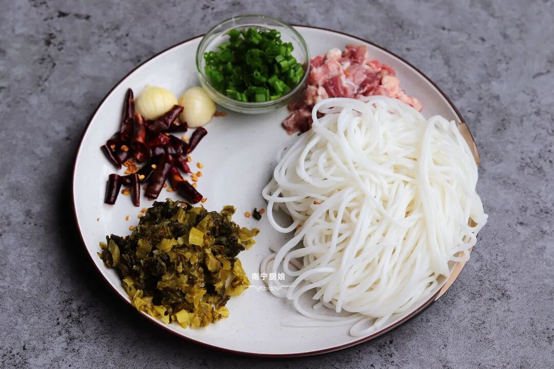 在南方,米粉是普遍存在的一种食物,尤其受两广地区人们的喜爱,“无宴会不有米粉”这句话更是由来已久。而这道酸菜炒米粉就是当地的特色小吃之一。爽滑的米粉配上酸脆可口的酸菜,简直是开胃又提神。而且这道菜中有肉有菜,营养丰富不单一,简直就是完美!