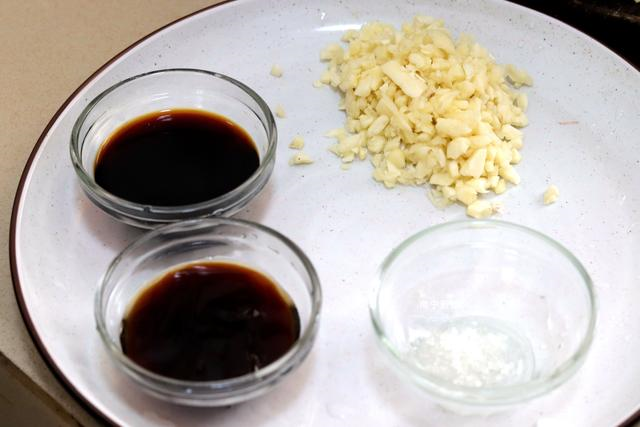 准备食材:生菜2颗,大蒜半个,蚝油1勺,生抽2勺,食用盐8g,水淀粉半碗。