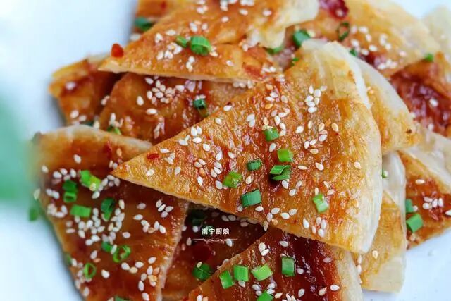 起锅以后,一定要开中小火慢慢烙饼,不要着急,毕竟这是个技术活,火太大了很容易糊的,但是太小又没有口感,所以一定要控制好火候。