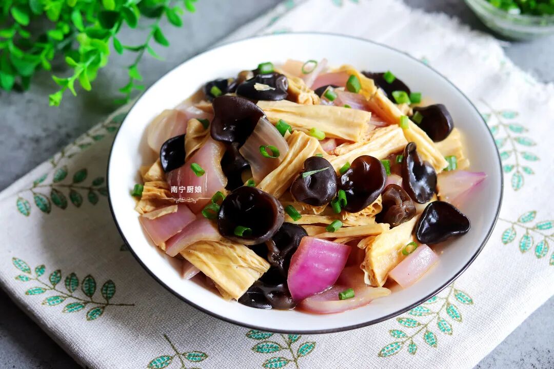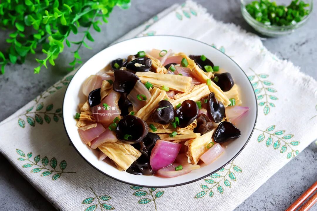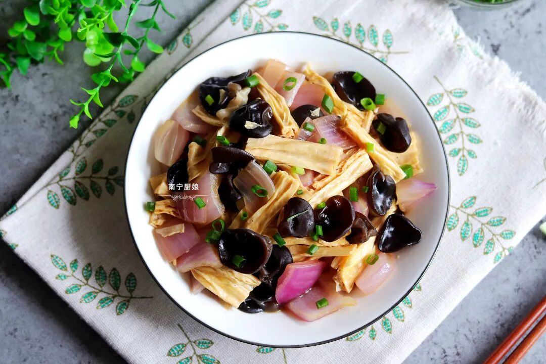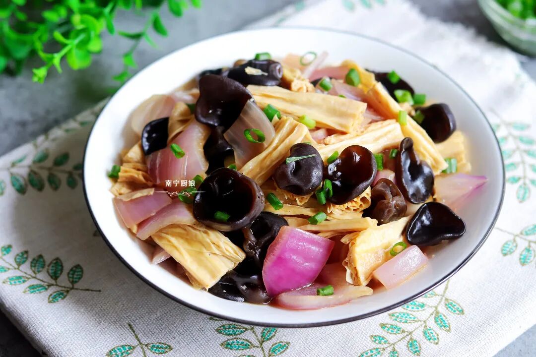 木耳为何如此受营养师的青睐呢?那是因为木耳中有一种多糖的物质,这种物质能够有效的抑制肥胖的形成,同样具有减肥效果的洋葱富含着各种微量元素,木耳搭配上洋葱简直就是一碟美味的减肥小菜。那么今天就给大家分享一道洋葱木耳炒腐竹,这菜特别适合减肥中的女人吃,营养高0脂肪,鲜嫩可口,做法简单。