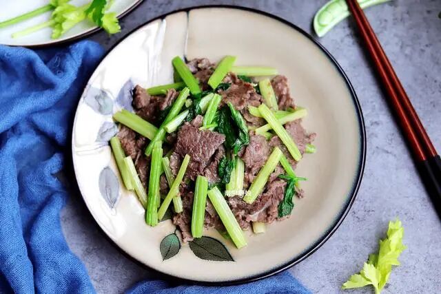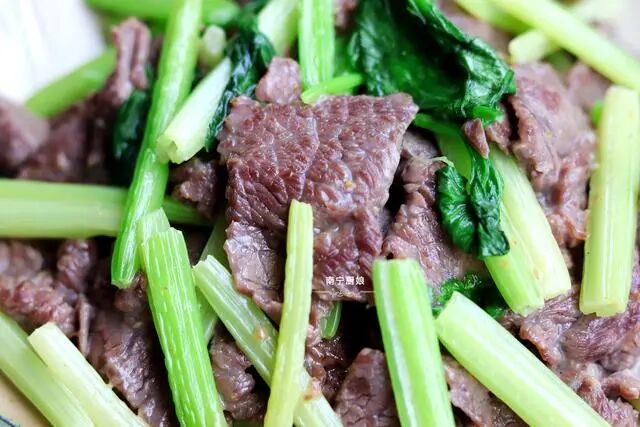单独吃牛肉那太单调,营养也不够全面,所以我加入芹菜一起炒,而芹菜自带芳香,这种芳香同时还具有提高人体食欲的作用,让香味更浓郁。芹菜营养也十分的丰富,富含大量的粗纤维、蛋白质、钙、铁、维生素等营养,和牛肉一起搭配食用,可谓是黄金搭档。