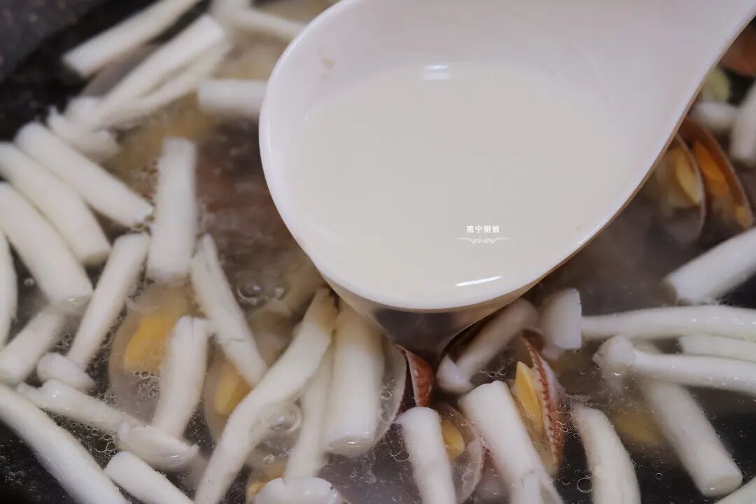 花甲和海鲜菇煮出来的汤味道好极了,花甲和海鲜菇的鲜味都融入进汤里面,而且一点腥味都没有,只有新鲜海鲜菇的细腻和花甲肉的鲜嫩。