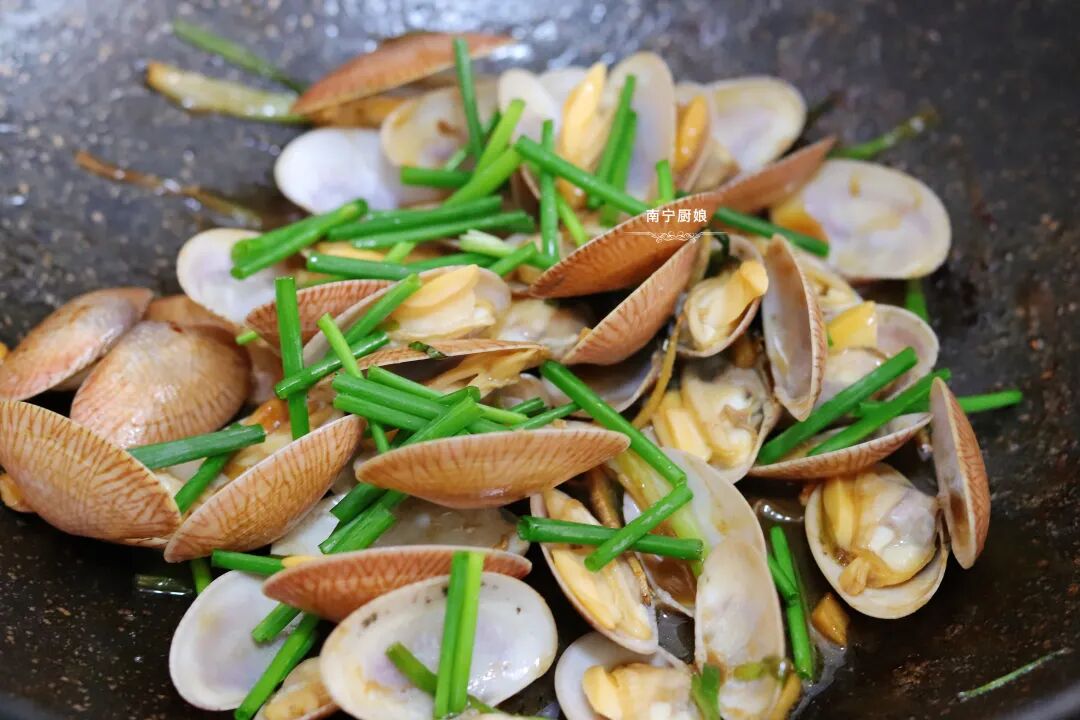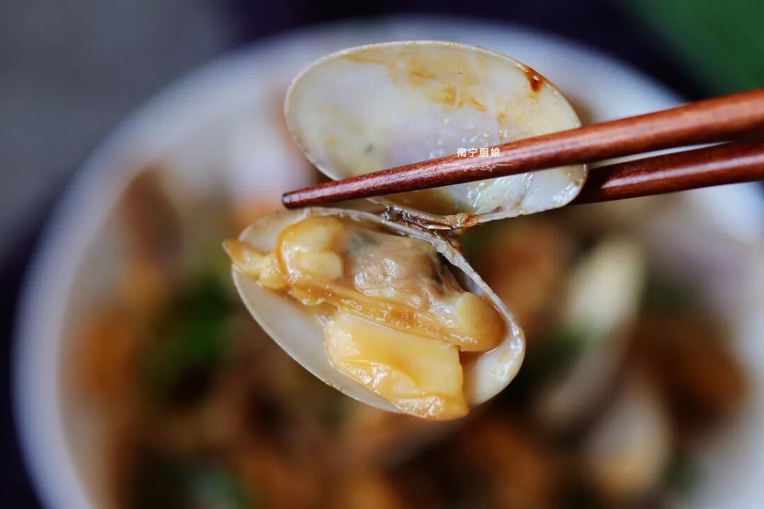 在广西,宵夜成为了一种文化。在广西的各个地方都有不一样的宵夜饮食,对于厨娘来说吃宵夜已经成为一种习惯。在宵夜摊上最喜欢的一道菜就是爆炒蛤蜊,每次都是直接上手吃,这样吃起来才有感觉。蛤蜊的脂肪含量不高,对于爱吃宵夜又爱吃爆炒类食物的人来说不会那么容易积食长胖。