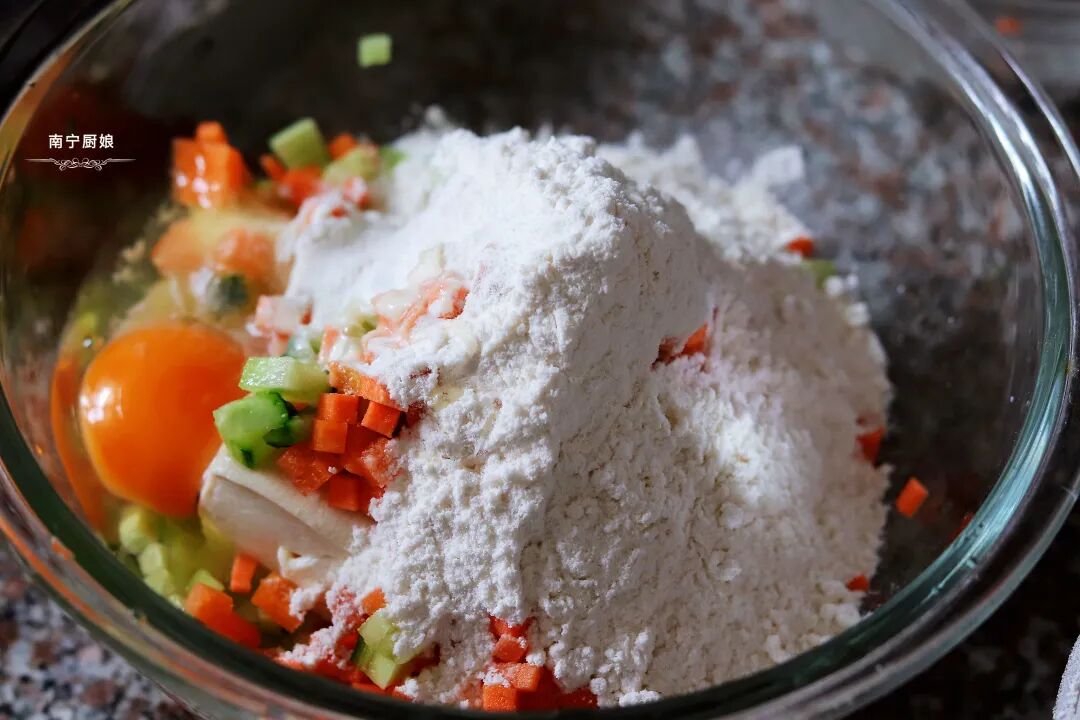 2、如果有朋友喜欢吃辣的话,那么在调馅料的时候可以加入一些小米辣,煎出来的豆腐饼就是辣味的了。