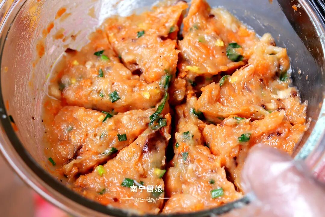 2、要是懒得自己动手切菜,可以在买菜的时候请别人帮忙将鸡肉、胡萝卜绞碎。