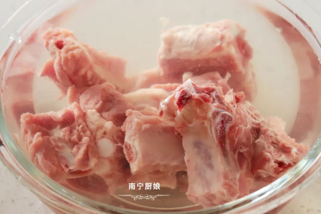 1、排骨在烹饪之前建议先用纯净水泡一下,一个好处是可以把血水排出来,后期烹饪出来没有腥味;另一个好处是让排骨吸收一些水分,后面在加热炸制时,肉质吃起来不会太柴,依然保持鲜嫩的口感。