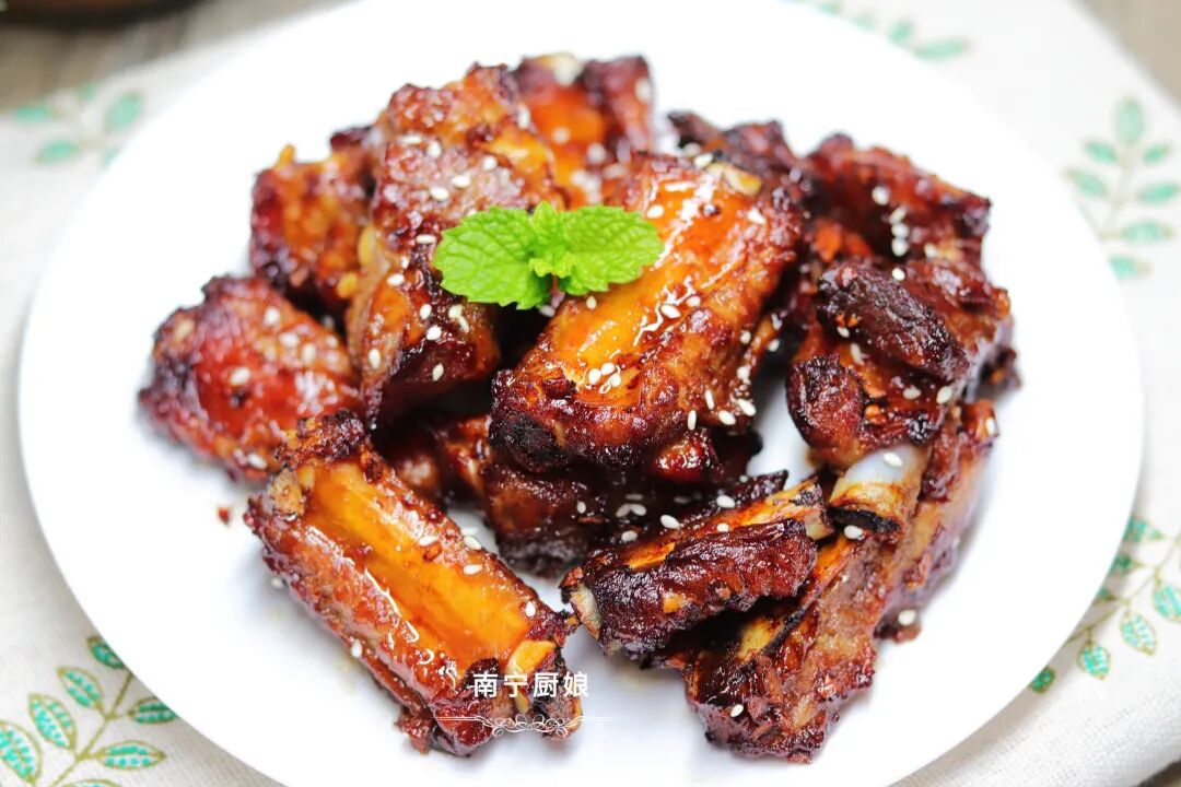 2、如果家里没有空气炸锅,也可以用平底不粘锅来煎制,不同之处就在于,用平底不粘锅来制作,就需要倒入一定量的食用油打底,还有就是在煎制过程中需要留意观察排骨的煎制情况来进行翻面,以免排骨糊锅了。