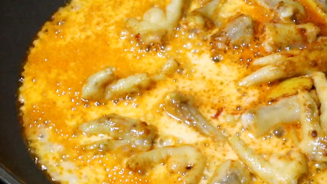 第八步:时间到之后,咱们打开盖子看一下,哇哦,这个时候鸡爪的色泽红润,十分的漂亮,而且香飘满屋,咱们转成大火,稍微收一下汁,等汤汁变得浓稠的时候,就可以出锅啦。