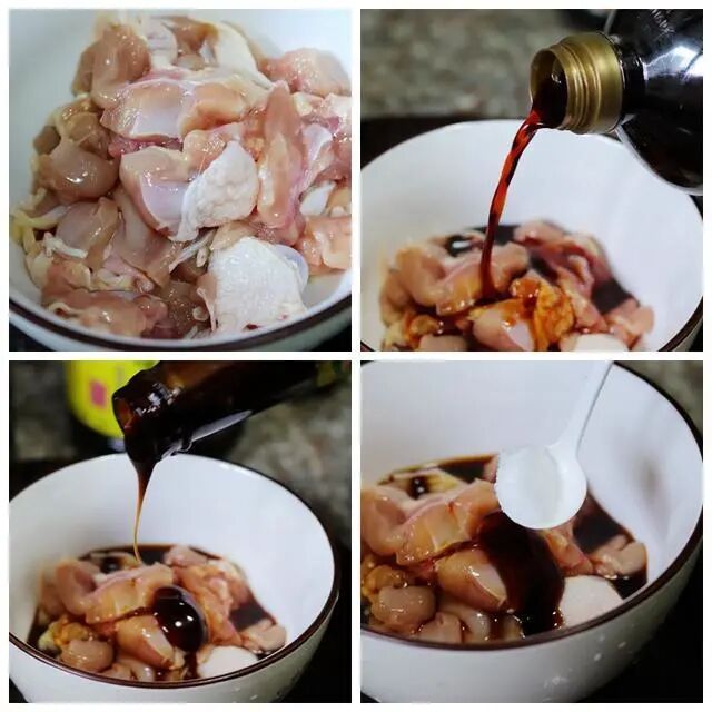 调味料:生抽2勺、蚝油2勺、老抽1勺、白糖1小勺、黄酒小半勺。