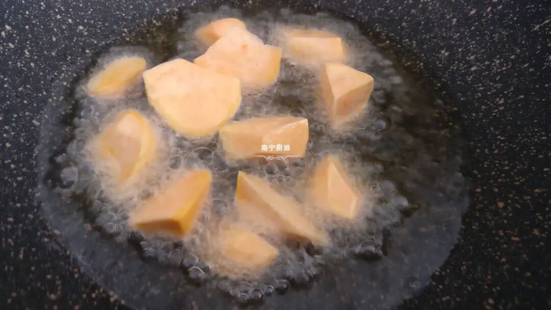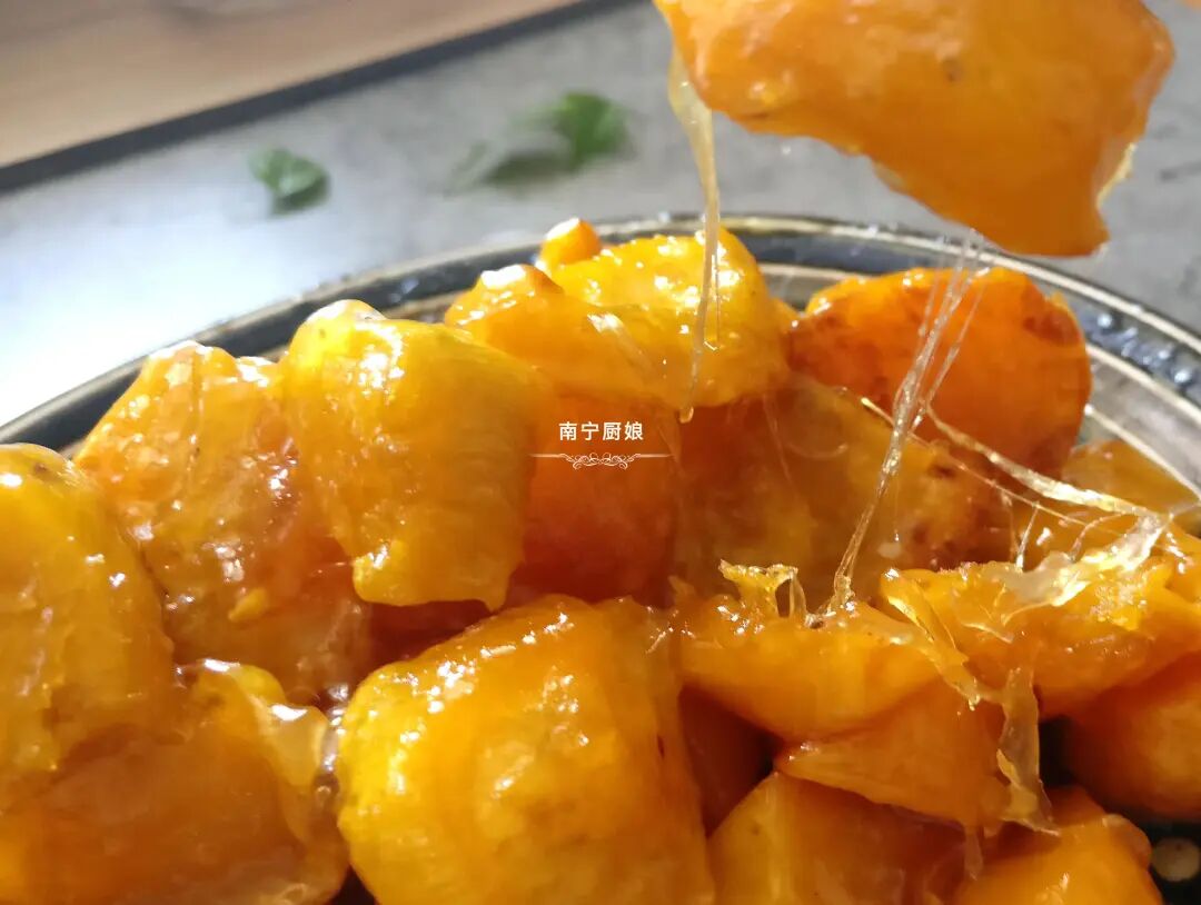 今天在家看一档美食节目的时候,突然看到电视里的大厨做的拔丝地瓜做出来好诱人呀,金灿灿的,夹起一块拔起好多丝,看着都快流口水了!