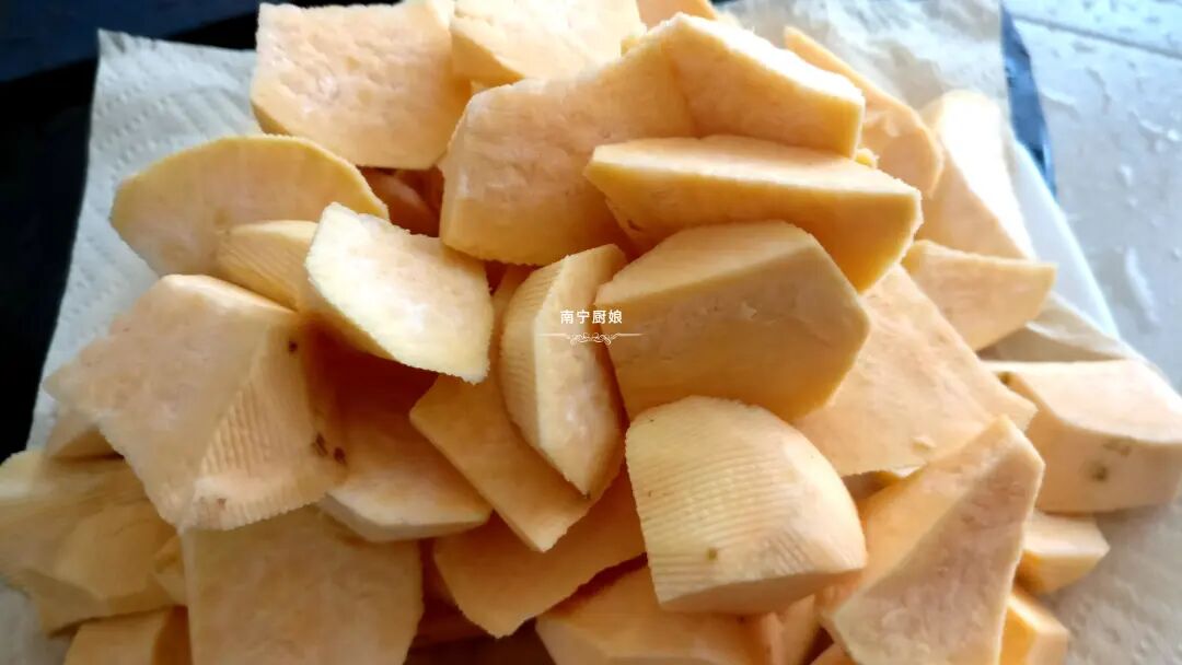 1、把地瓜洗净后起皮切块。