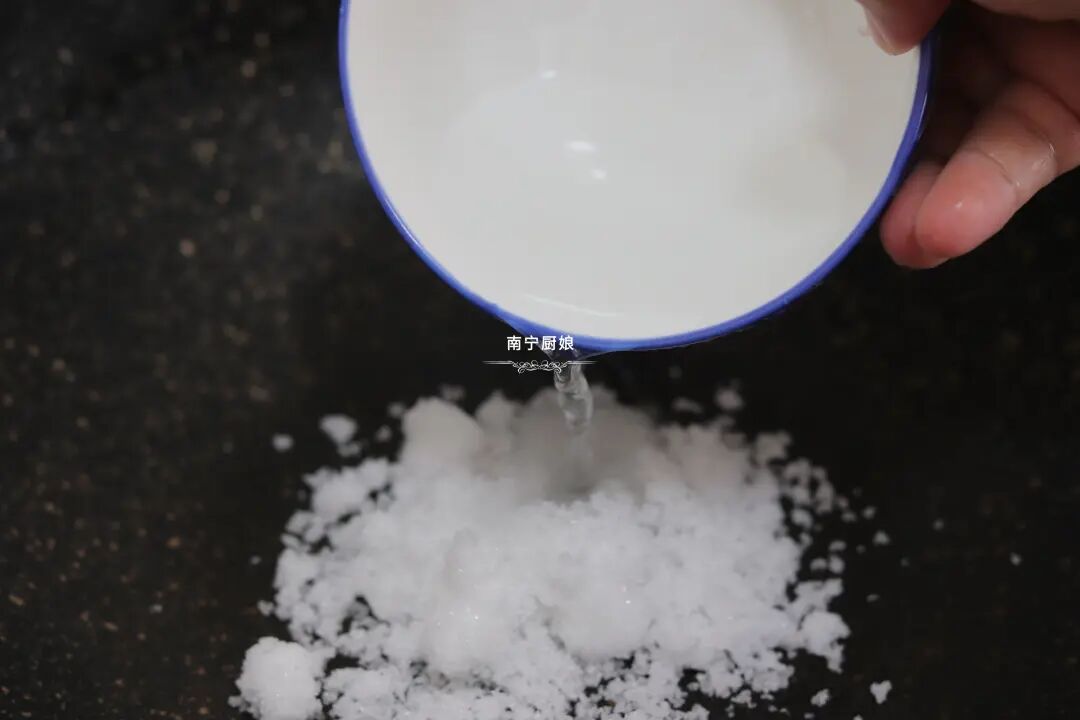 4、重起锅,在锅里倒入白砂糖,开小火慢慢熬,过程中可以适当加点清水加快白糖融化。