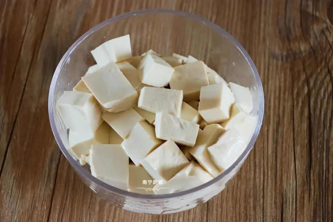 第一步:把水豆腐切成小方块装碗待用。
