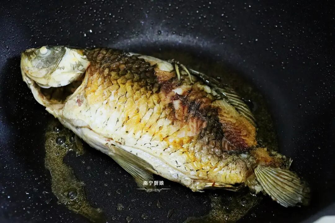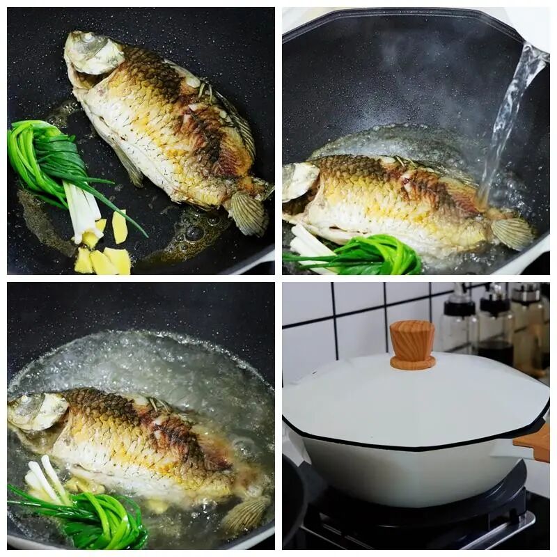 2、想让自己做出来的鲫鱼汤快速奶白,一个是要把鱼给煎透,另一个就是要加入的是开水,不是冷水,这样在后续炖煮过程中,鱼肉才会容易被鱼汤给稀释后煮出奶白色的鱼汤。