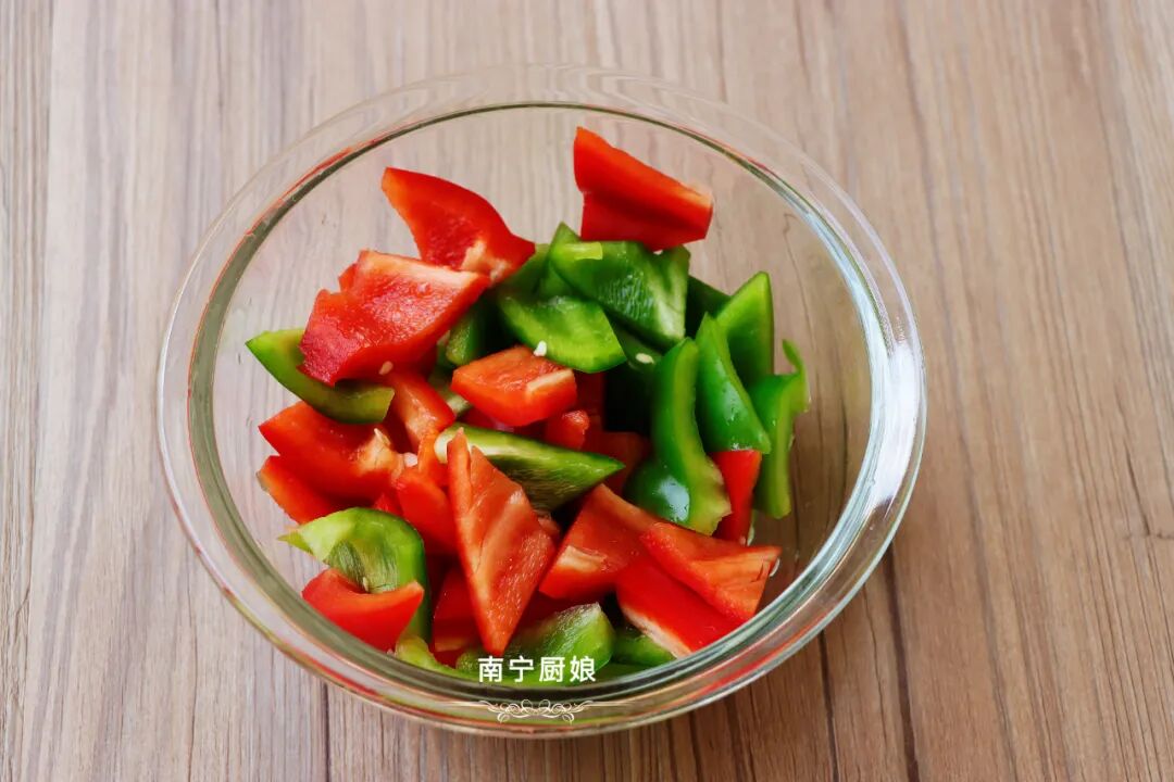 第一步:首先将青红椒以及蒜瓣、葱、白玉菇清洗干净,然后把青红椒切成块状,香葱切成葱花,蒜瓣切成蒜末,装好放到一旁备用。