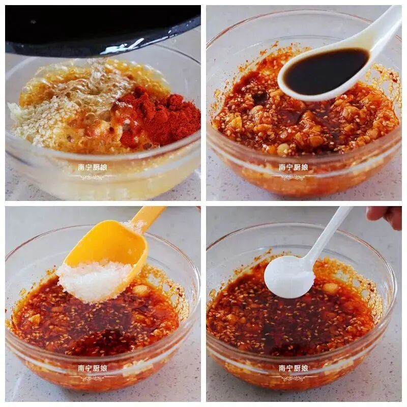 5、调味品的用量可以根据自己喜欢的口味来放,喜欢甜口就多加一些白糖,喜欢酸一点的口感,就多加一些陈醋。