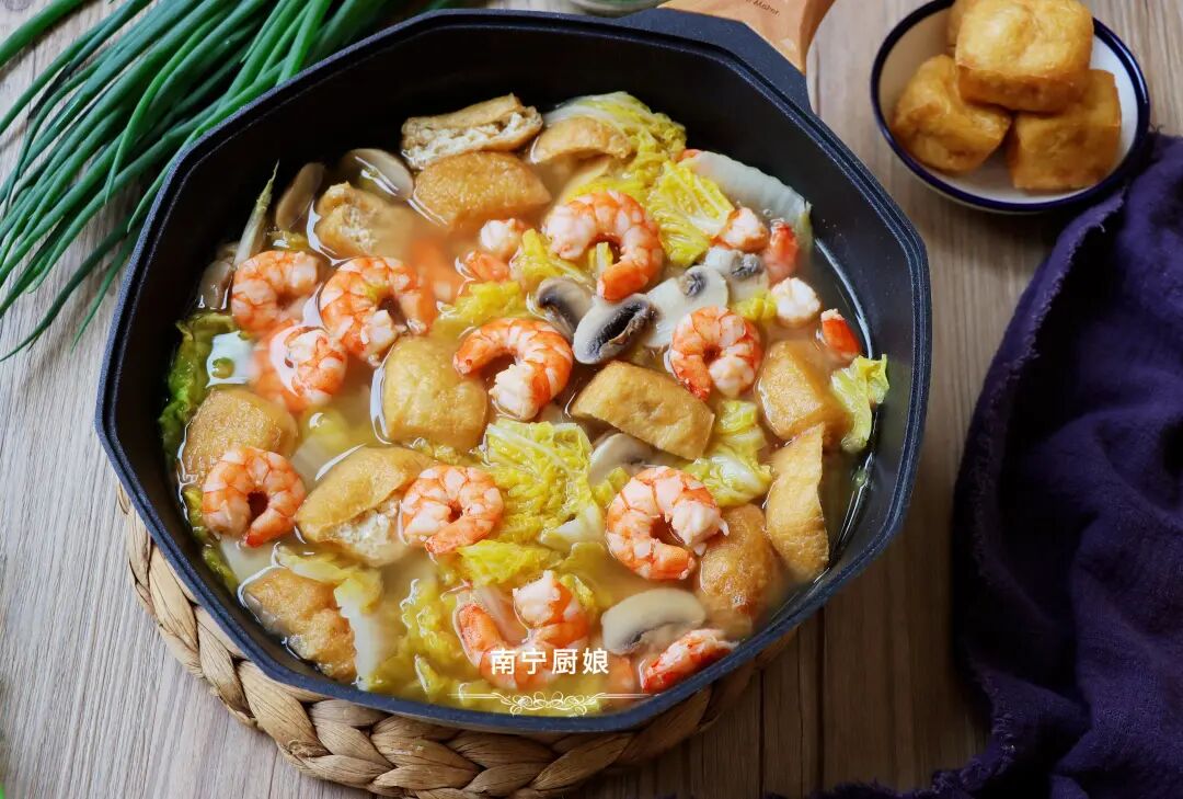 在这样闷热的季节里,大家一般会呈现出这样的症状:食欲不振,不想吃干的食物,想多喝点儿汤汤水水。为此,每天吃些什么就成了大家很苦恼的问题。在这里厨娘给大家推荐一道适合夏天食用的美食——白菜油豆腐虾煲。