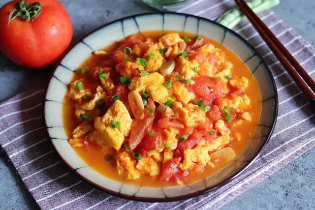 西红柿、鸡蛋、食用油、食用盐、葱、姜、大蒜、米醋、白糖