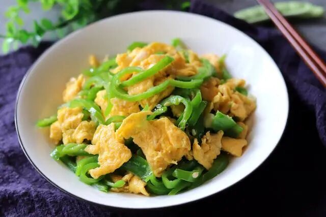 青椒2根、鸡蛋3颗、大蒜3瓣、食盐1勺