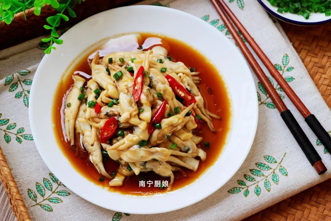 秋天是吃海鲜的好时节,秋天遇到蛏子这种小海鲜别手软,做成凉拌菜,肉质鲜嫩肥美,下酒又下饭。今天给大家分享一道在家就能做出来的美味凉拌海鲜——葱油蛏子。接下来,就让我们一起来看下葱油蛏子的具体做法吧!