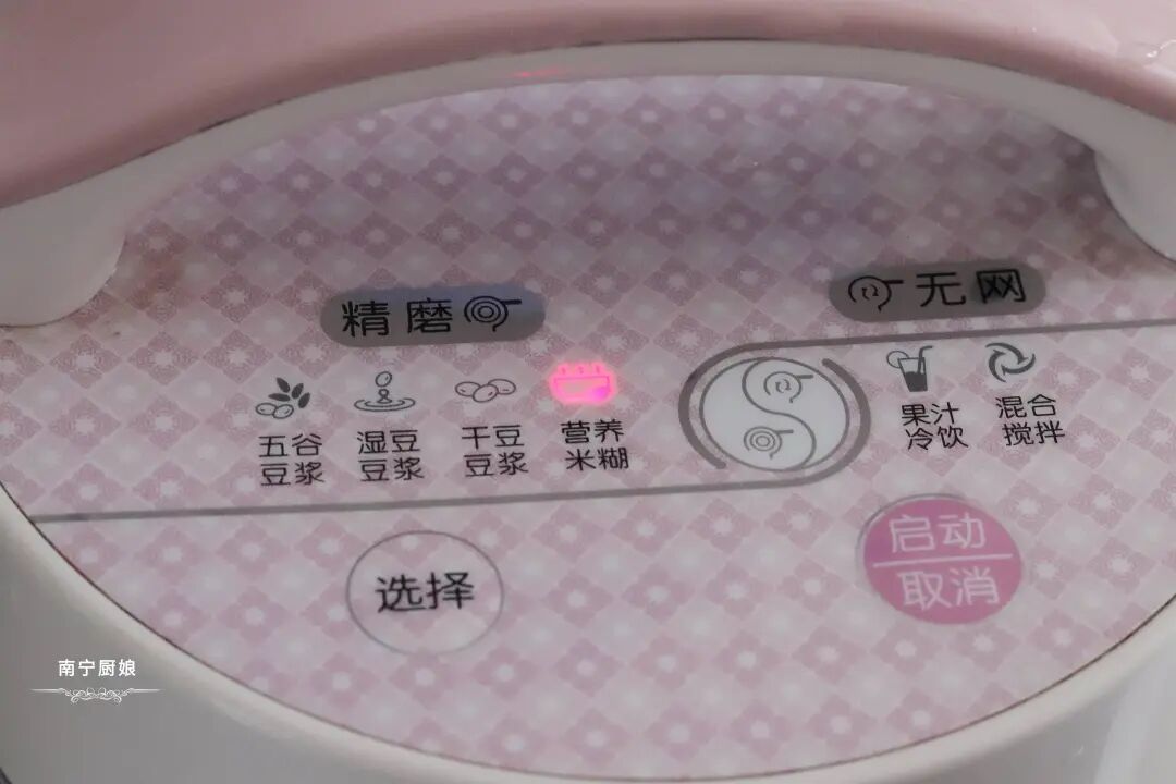 4、盖上盖子,选择米糊键,豆浆机会自动搅拌烧煮完成。